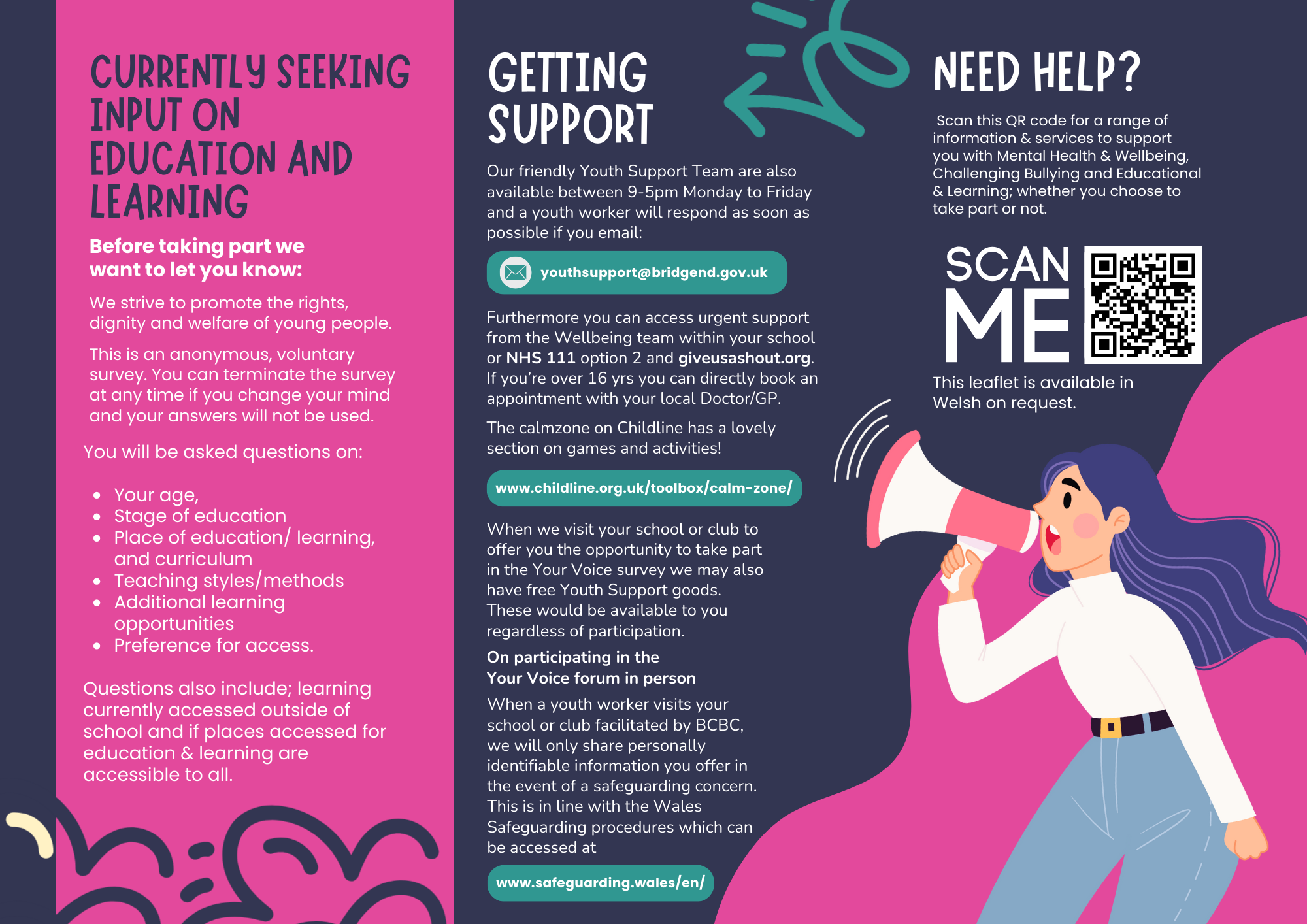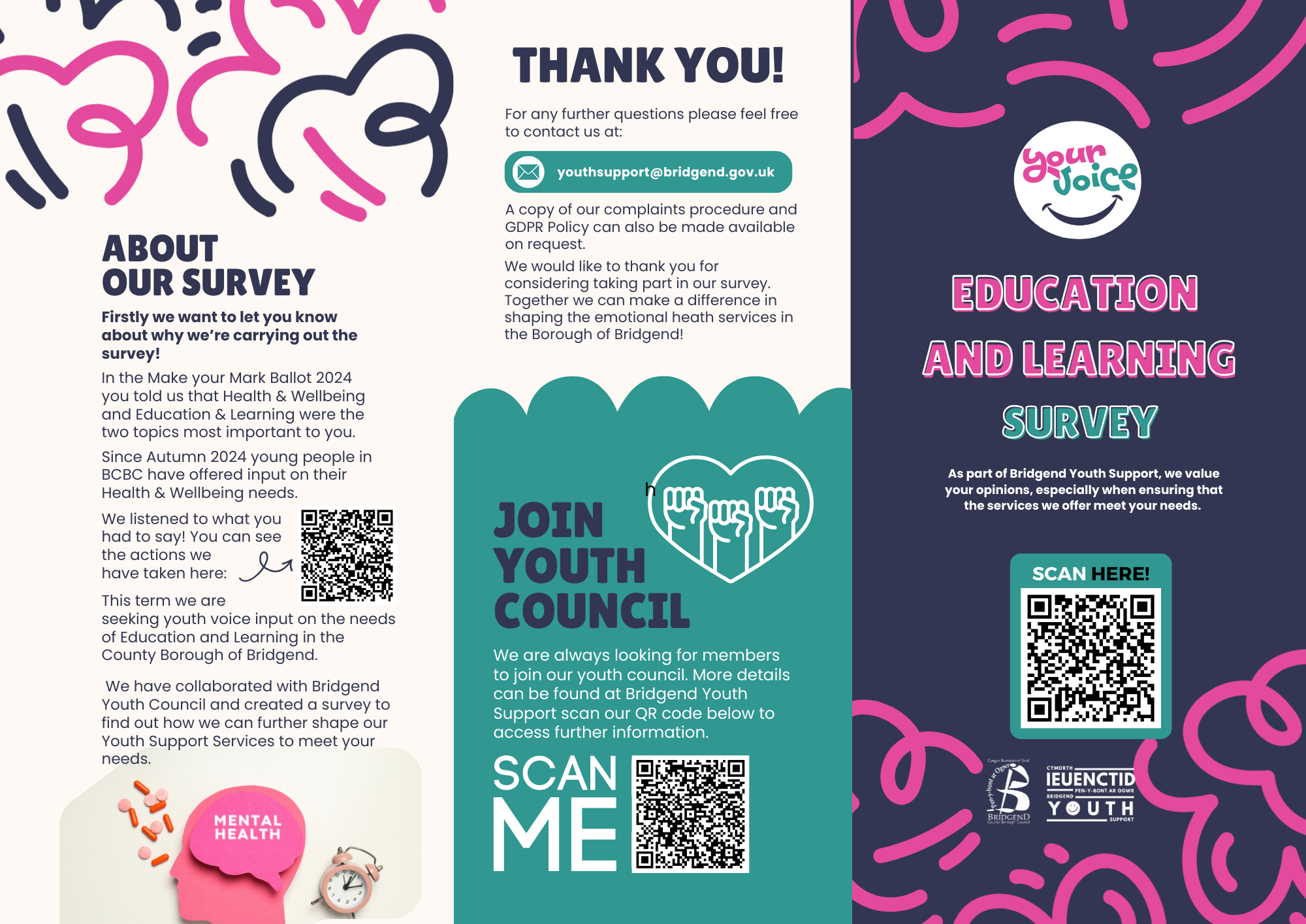 We have collaborated with Bridgend Youth Council and created a survey to find out how we can further shape our Youth Support Services to meet your needs.